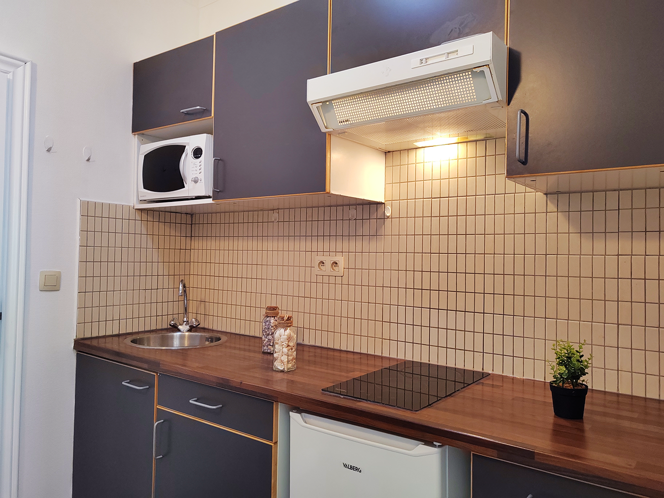 L’appartement comprend une cuisine entièrement équipée avec un réfrigérateur, une plaque de cuisson et un micro-ondes. De plus, toutes les connexions nécessaires sont en place pour installer votre propre machine à laver, rendant cet appartement meublé encore plus attrayant.