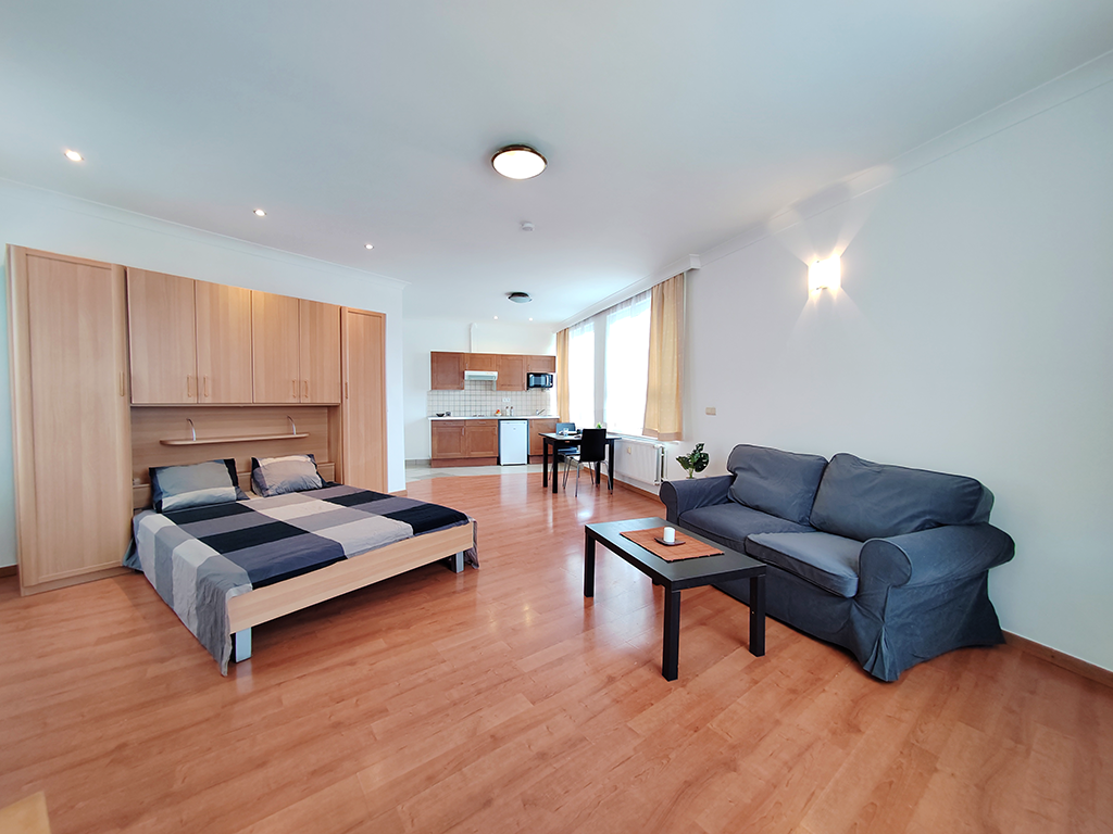 Dès votre arrivée, vous serez accueilli par un espace de vie meublé généreusement proportionné, parfaitement relié à une kitchenette entièrement équipée. La kitchenette est équipée d’un réfrigérateur, d’une plaque de cuisson et d’un micro-ondes, offrant tout le nécessaire pour un mode de vie confortable. L’espace de vie comprend également une salle de bains attenante avec une baignoire et des toilettes, ajoutant à la commodité et au confort de vie.