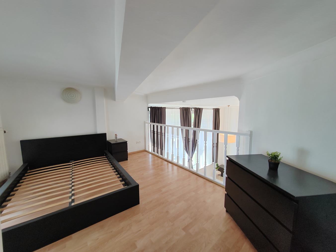 La chambre principale en mezzanine, spacieuse et accueillante, peut confortablement accueillir deux personnes, assurant des nuits paisibles. L’appartement est parfaitement adapté à ceux qui souhaitent être à proximité du cœur de Bruxelles tout en bénéficiant d’un accès aisé aux quartiers environnants.