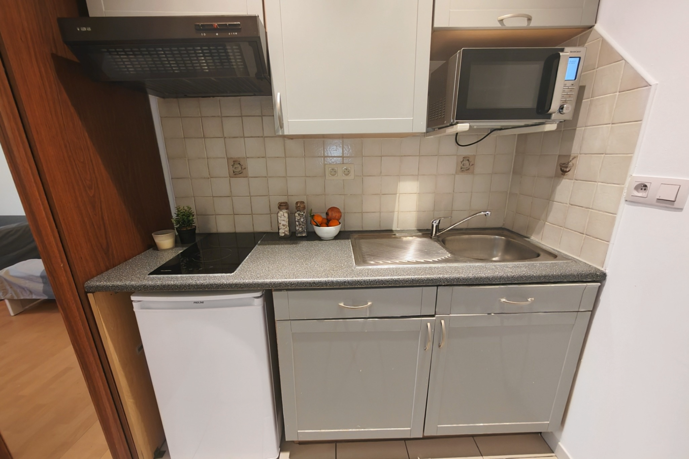 Situé au 5e étage d’un immeuble sécurisé avec des caméras de surveillance et un ascenseur, cet appartement garantit non seulement une sécurité renforcée, mais offre également des vues imprenables sur la ville. L’intérieur bien pensé vous accueille dans un espace de vie confortable, avec un grand lit double dédié à la zone de couchage, complété par un canapé associé à une télévision pour une zone de détente confortable. Des solutions de rangement intelligentes sont intégrées de manière transparente, offrant amplement d’espace pour organiser vos effets personnels. La cuisine bien équipée est conçue pour les amateurs de cuisine, avec une plaque de cuisson, un micro-ondes et un réfrigérateur pour répondre à toutes les exigences culinaires. De plus, une salle de douche privée avec des installations sanitaires assure l’intimité et le confort au quotidien.