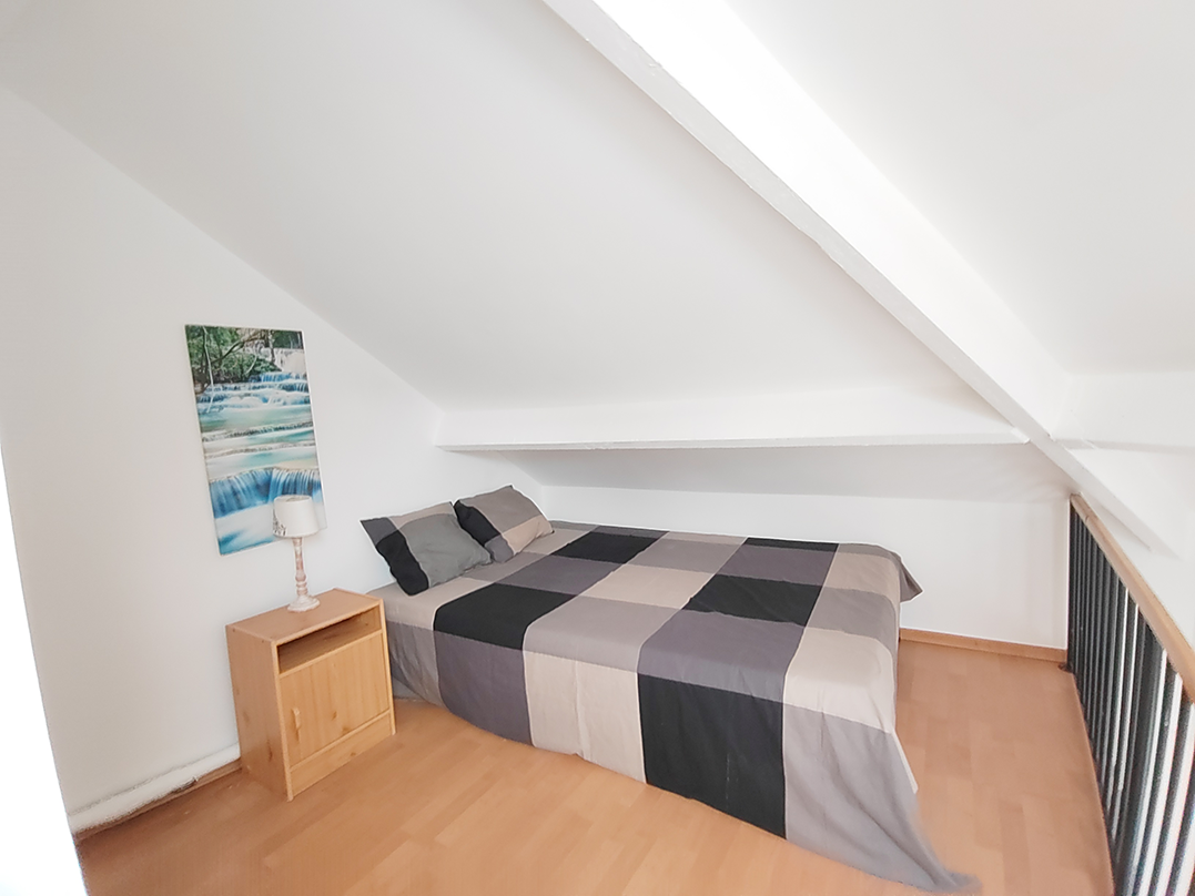 L’appartement dispose d’une chambre en mezzanine confortable offrant un refuge privé avec un accès à une salle de bains attenante. Pour votre commodité, des toilettes séparées se trouvent près de l’entrée, garantissant le respect de votre intimité et de votre espace personnel. Cette conception réfléchie ajoute une touche pratique à l’appartement.