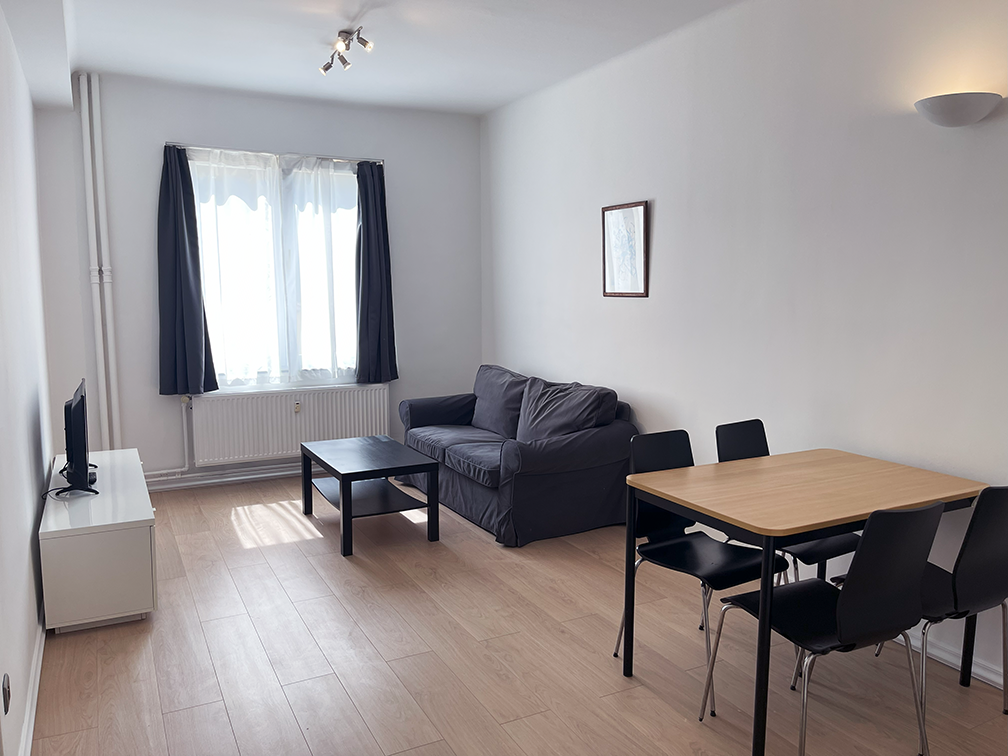 Dès l’entrée, vous serez accueilli par un hall pratique avec rangements. La cuisine moderne et entièrement équipée donne sur un salon lumineux et cosy, parfait pour se détendre après une journée bien remplie. Le mobilier est complet et fonctionnel (des variations par rapport aux photos sont possibles).