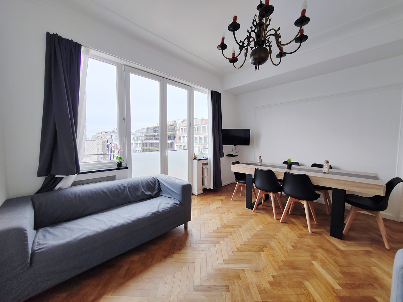 Welcome to this impressive and large fully-furnished apartment with 3 spacious bedrooms and 2 small bedrooms, located on the seventh floor of an elevator-equipped building in the lively European district of Brussels. This apartment provides an ideal solution for both short and long-term stays in the city center with a beautiful view on the city of Brussels.