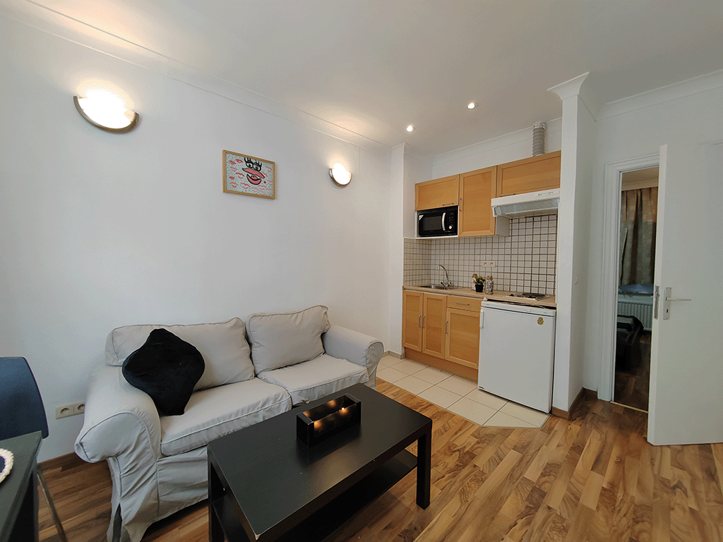 Upon entering the apartment, you will immediately be struck by the brightness of the apartment. The cozy living room is equipped with a comfortable sofa and dining table, perfect for relaxing after a long day of work or entertaining guests. The kitchen is fully equipped with all the necessary appliances, such as a refrigerator, stove and microwave oven. The master bedroom has a comfortable bed and convenient storage for your clothes and belongings. You can also enjoy a private bathroom, equipped with a small bathtub and everything you need for your daily routine. This rental apartment is fully furnished and equipped to meet all your needs. All you have to do is bring your bags and make yourself comfortable. The property is located on the top floor of a small, quiet and secure building, offering absolute privacy and tranquility.