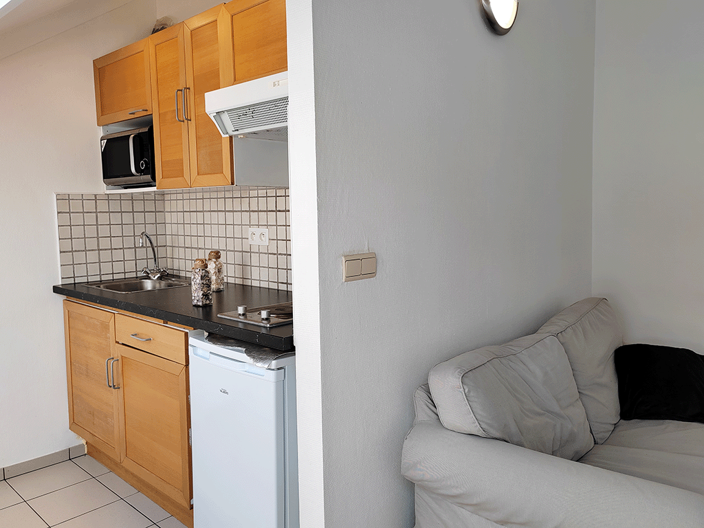 Upon entering the apartment, you’ll be immediately struck by the brightness of the space. The cozy living room is equipped with a comfortable sofa and a dining table, perfect for relaxing after a long day of work or entertaining guests. The kitchen is fully equipped with all necessary appliances, including a refrigerator, stove, and microwave. The master bedroom features a comfortable bed and convenient storage for your clothes and personal belongings. You can also enjoy a private bathroom accessible from the bedroom, equipped with a small bathtub and everything you need for your daily routine. This rental apartment comes fully furnished and equipped to meet all your needs. All you have to do is bring your bags and settle in comfortably. The property is located on the top floor of a quiet and secure small building, offering absolute privacy and tranquility.