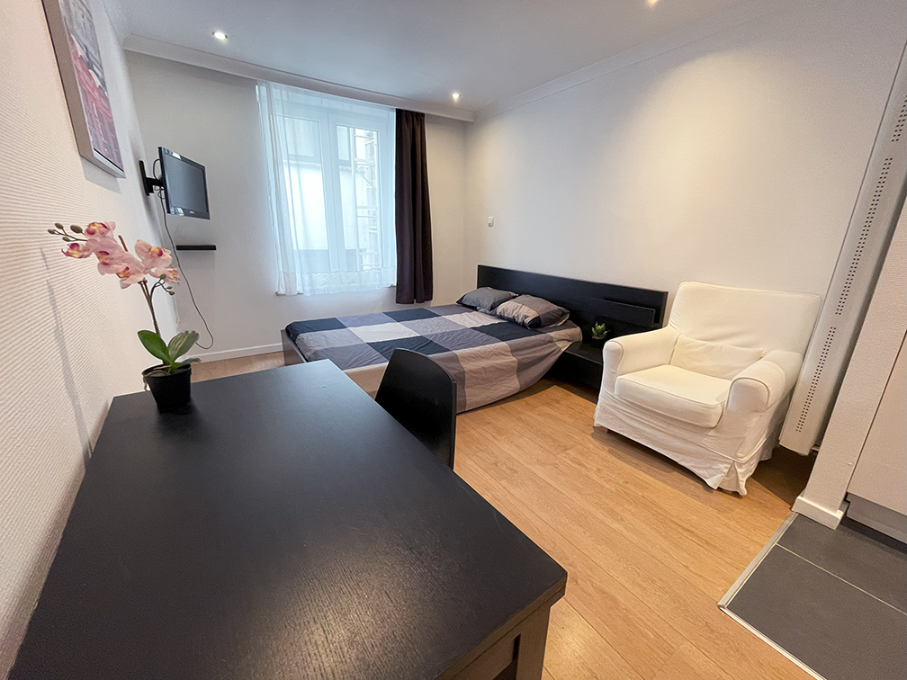 Located on Boulevard Maurice Lemonnier, right in the heart of Brussels, this furnished studio on the 1st floor offers a practical and central living environment, just a few minutes’ walk from the Grand Place and the pedestrian zone. Perfect for a student, a young couple, or an intern at the European institutions, this apartment combines a strategic location with smart comfort. The interior is bright and welcoming, featuring a queen-size bed and carefully selected furniture to create a warm and functional atmosphere. The fully equipped kitchen includes a stove, refrigerator, and microwave—everything you need to prepare your meals with ease. This studio strikes a perfect balance between simplicity and functionality, set in a calm and secure building. While the building has no elevator, being on the 1st floor makes access easy while maintaining the privacy and quiet you’re looking for. Offered at an affordable price with flexible rental durations, this studio is an ideal choice for both short- and longer-term stays. It’s also easy to register your official address with the Brussels commune if you plan to settle in the city. Don’t miss this opportunity to live in the heart of the European capital. Contact us today to schedule a visit and discover how this studio perfectly blends convenience, comfort, and city life.LEMONNIER A – 1B