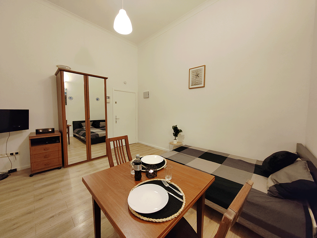 Are you in search of a furnished apartment rental in the bustling heart of Brussels? Look no further! This beautiful and spacious studio is situated on Boulevard Maurice Lemonnier, just a few steps away from the pedestrian zone and all the city’s attractions, including the iconic Grand-Place of Brussels. Whether you’re a young couple seeking a cozy nest or a blue book trainee at the European Commission, this apartment is the perfect choice. Upon entering the apartment, you’ll be greeted by a spacious living room boasting high ceilings, a comfortable queen-size bed, and all the necessary furniture to ensure your stay is both comfortable and enjoyable. The fully equipped kitchen, featuring a stove, fridge, and microwave, makes it convenient for you to prepare your meals at home. Although the apartment doesn’t have an elevator, it’s conveniently located on the first floor of a small, secure building. Moreover, with its view of the bustling street below, you’ll always feel immersed in the heart of the action. In addition to its fantastic location, this apartment is an excellent option for those seeking affordable rentals in Brussels. All our apartments are available for contractual periods ranging from 3 months to 1 year or more, providing flexibility for you to find the ideal accommodation in Brussels. Additionally, if you’re looking to establish your residence in Brussels, all our apartments are eligible for direct debit, facilitating the process of registering your address with the city. So, why wait? Contact us today to schedule a visit and discover all that this charming furnished studio has to offer. We look forward to welcoming you to Brussels!LEMONNIER B – 1